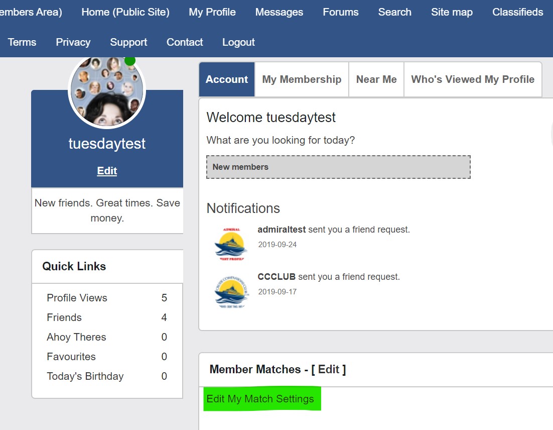 From there you can click on Search Member Matches, to have an overview of those six profiles, and individually view the profiles that may appeal to you as a potential cruise companion.